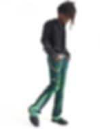 Black denim jacket with metal grommets placed around the bottom hem for a unique finish. Distressed areas on the front and back reveal a layer of faux leather with a subtle snakeskin texture. A few spikes are placed across the front, and a small spider pin sits on the shoulder — a quiet detail that makes the piece stand out.